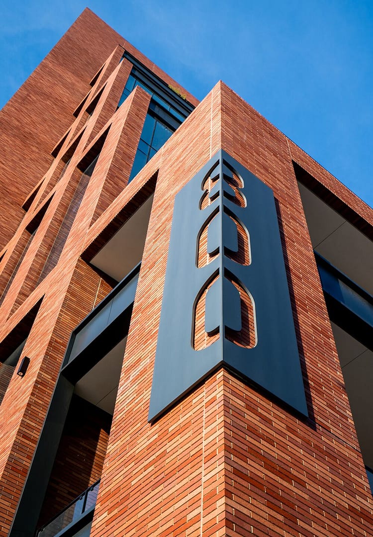 LAPPCO fabricated over 500 brick clad panels for the project, each featuring a four-color blend of Endicott Meridian-sized thin brick pieces. The precast panels had to be erected on a site with extremely limited staging areas and very congested city streets.